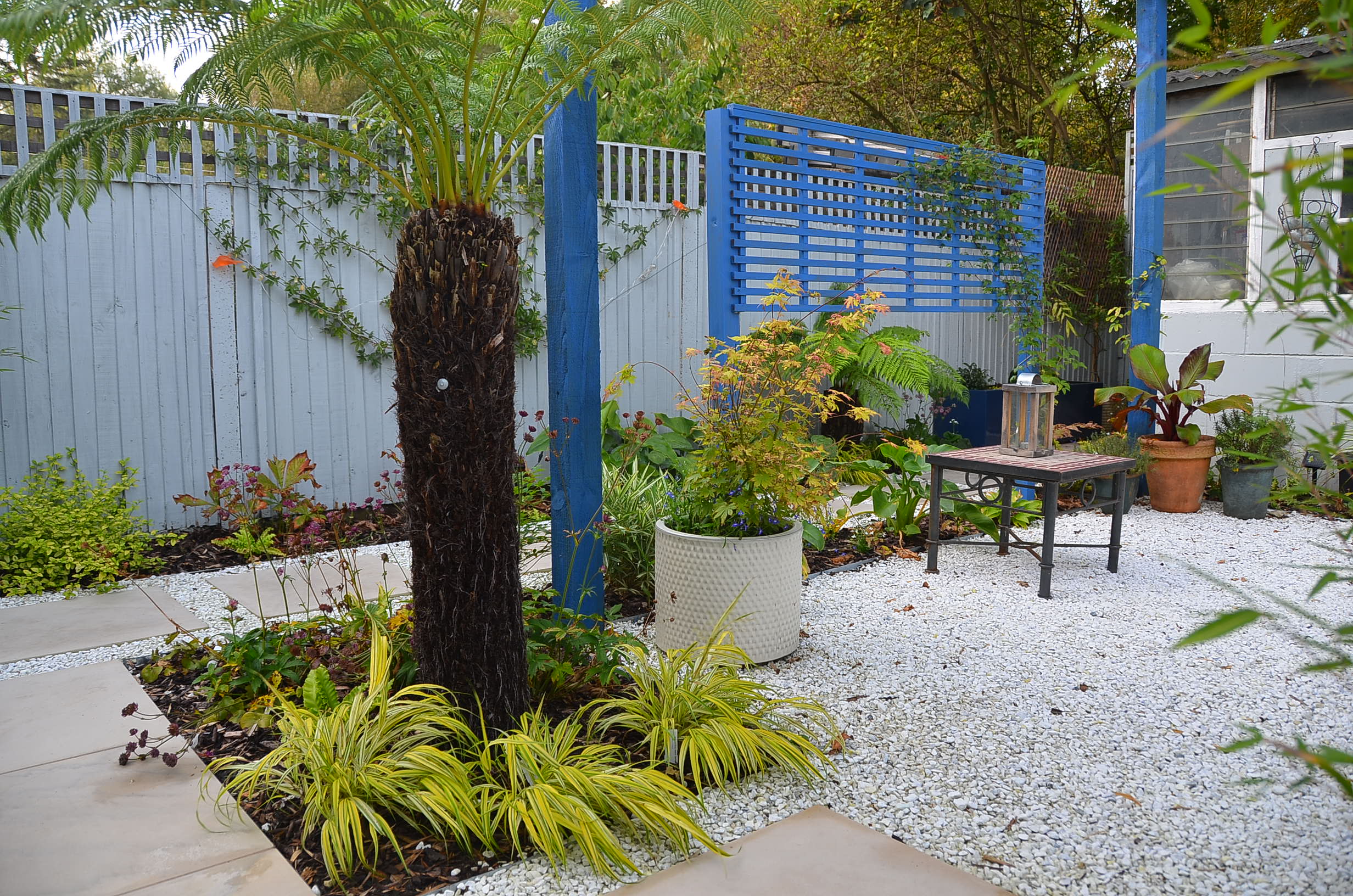 exotic planting, the bright colours and particularly the Majorelle Blue.